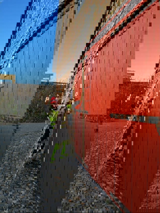 Det har vert dugnad på Fenka, ny dør innsatt, porten retaurert samt at brannbilen får ny toppakning.