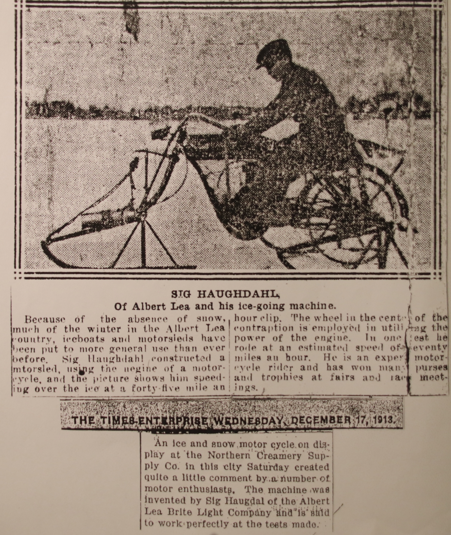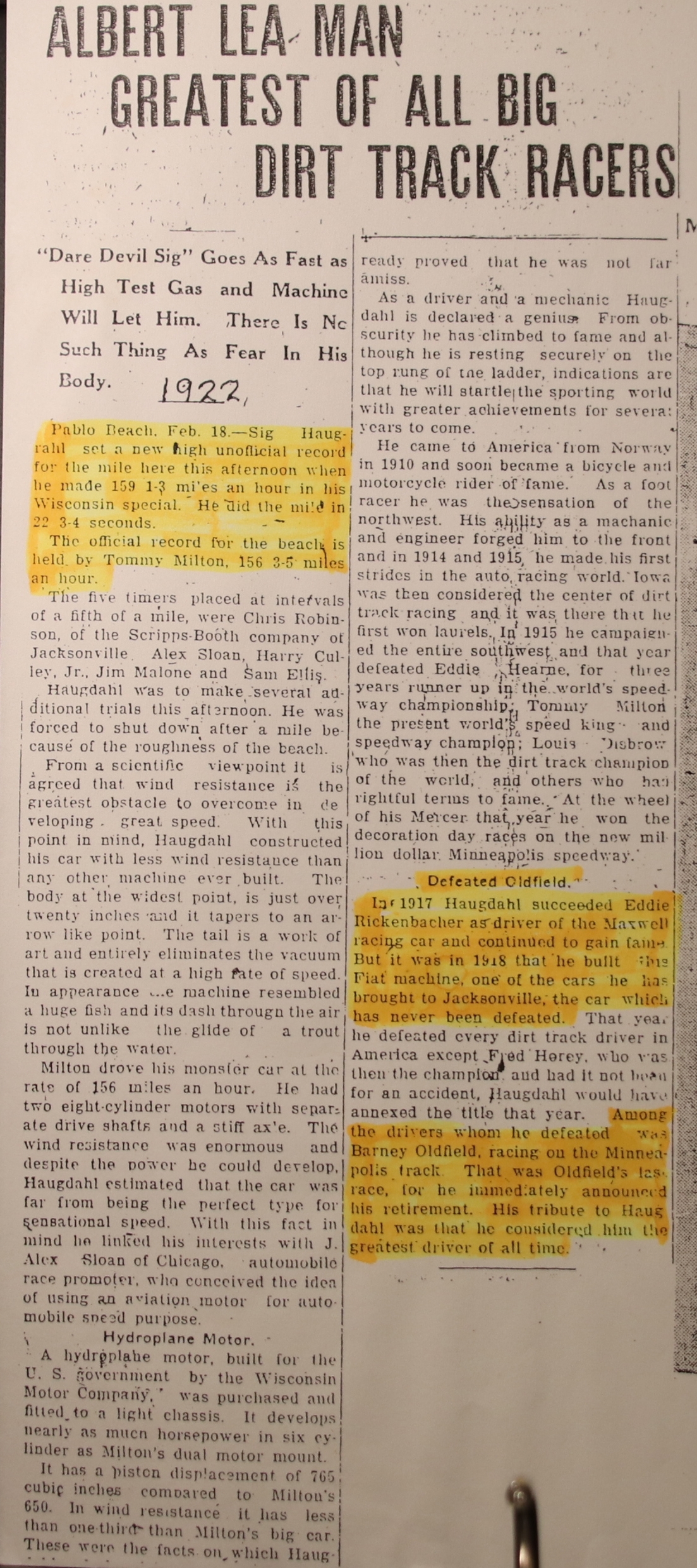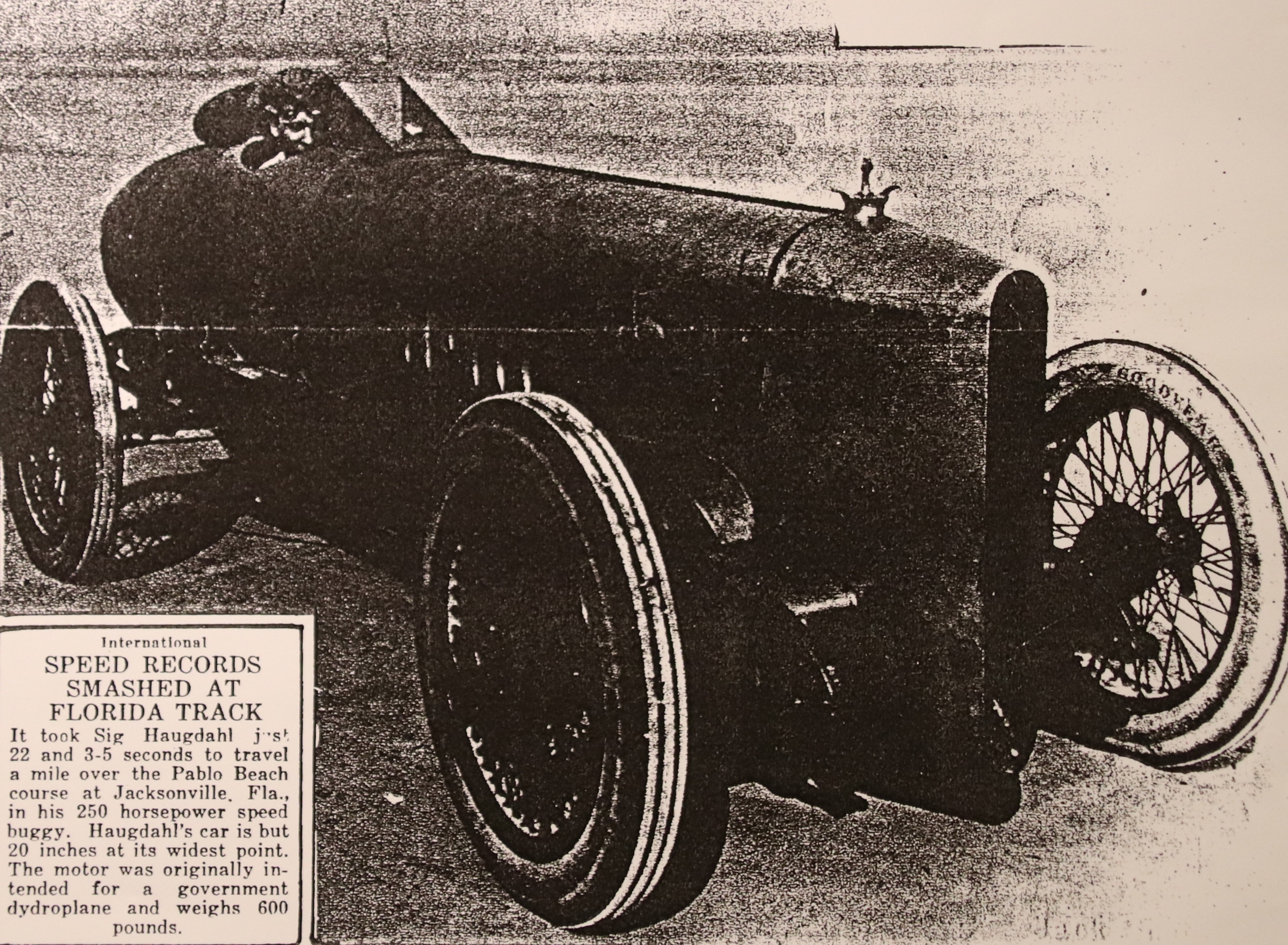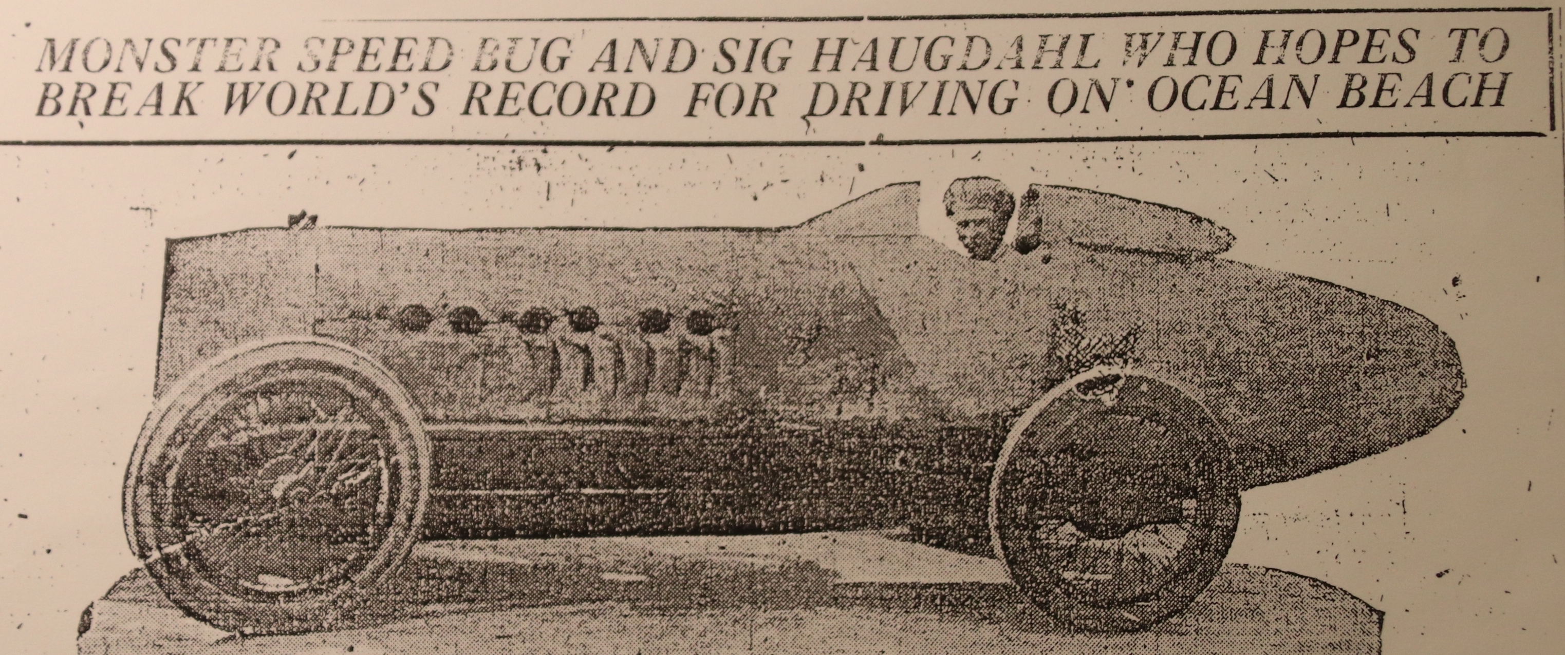 Bilder vi har fått til oppbevaring, Sig. Haughdahl satte verdensrekord med bil i 1922 med 290 km/t i selvbygd bil. Han var utflyttet fra Verdal til USA.