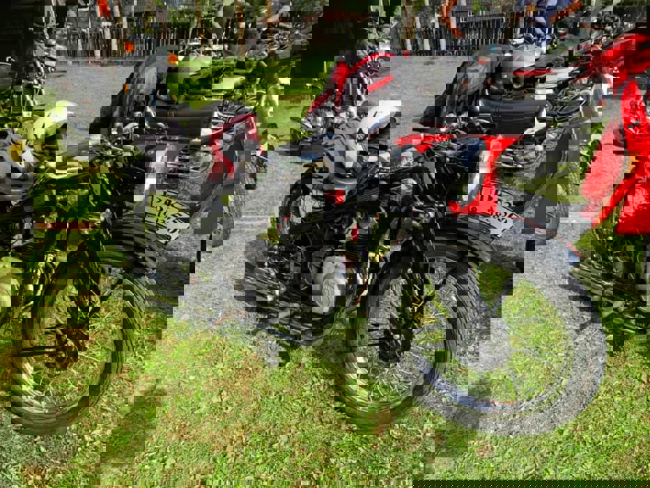 Så skulle vi ut på nye 2 mil og mopedene fikk også her 5 minutter forsprang. Post 2 skulle ende hos Anne og Kjell Ivar Haltvik på Strandhølmen. Kjell Ivar er kjent fra «Garasjen» da han holdt på med en Piccolo fra 1910, Levanger`s 2. bil. Kjell Ivar hadde restaurert flere biler før det, Fiat, Volvo lastebil, MG A, + at han hadde gjort noen restaureringsarbeider når NTMF restaurerte Vininus, Mercedes brannbil og klubbens Chevrolet buss. Da vi ringte og sa vi var 70 motorsykler på veg, ble han litt betenkt med å holde avstand, men vi spredte oss og alle tok avstandspåbudene på alvor. Anne var forespeilet at det kom sikkert ikke flere enn 20 – 30, nå ble hun litt oppgitt, men med en trakter som gikk for fullt fikk alle som ville kjøpe en kopp kaffe og kake. De jeg snakket med veldig fornøyd og imponert over besøket.