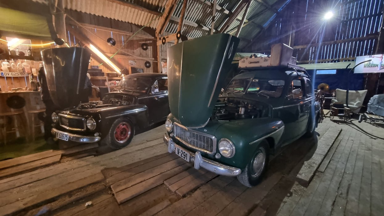 Han hadde mye å vise frem av både kjøretøy og andre duppedingser, kaffe og kake ble servert av hans bedre halvdel.